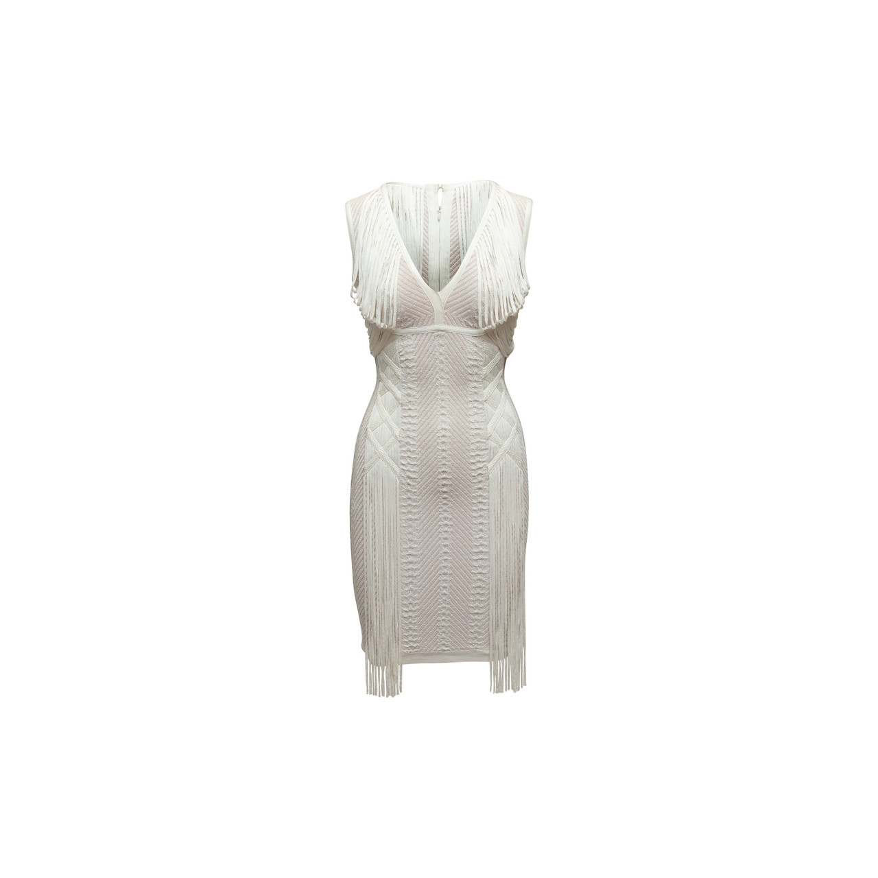 White Herve Leger Sleeveless Fringe Bandage Dress Leprix